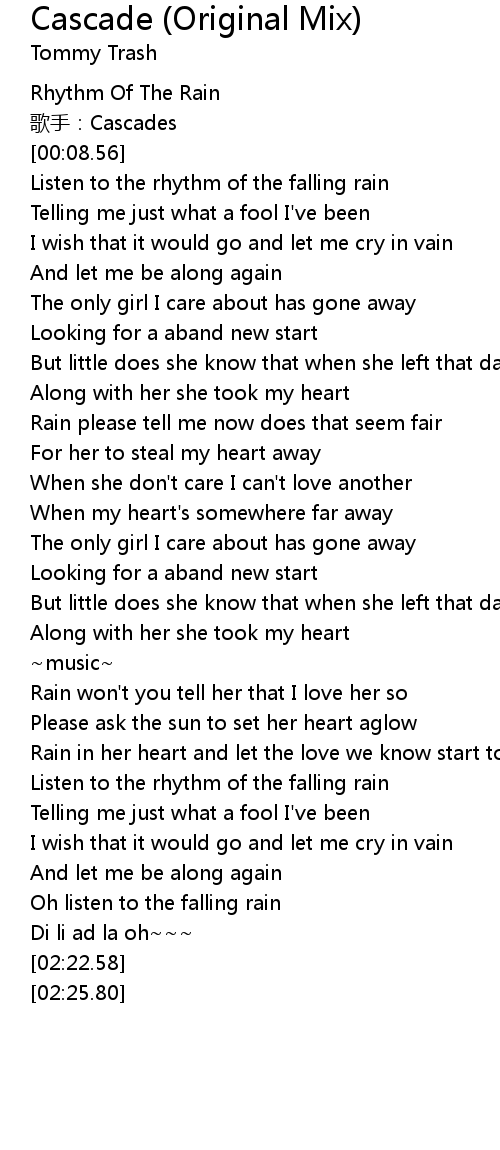 | [00:02.34] | Rhythm Of The Rain |
