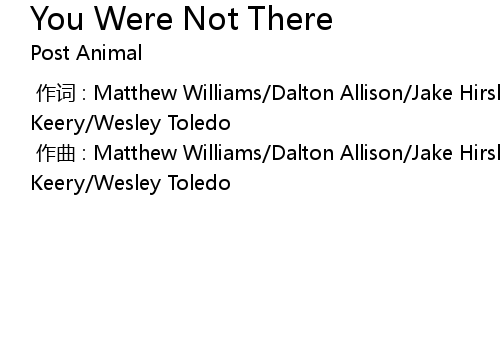 | [00:00.000] | 作词 : Matthew Williams/Dalton Allison/Jake Hirshland/Joe Keery/Wesley Toledo |