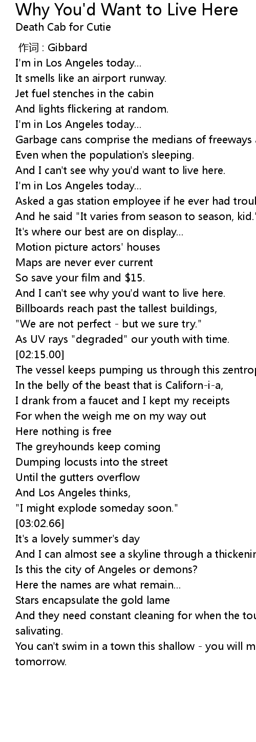 | [00:52.94] | And I can' t see why you' d want to live here. |