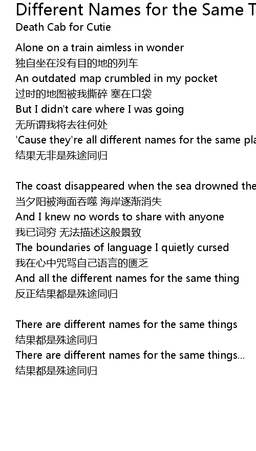 | Song | Different Names for the Same Thing |