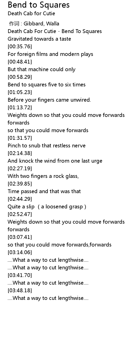 | [00:02.67] | Death Cab For Cutie - Bend To Squares |
