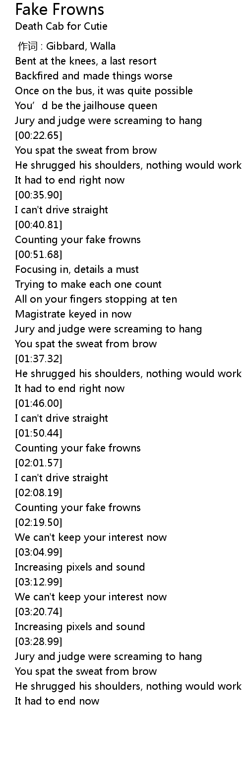| [00:00.00] | 作词 : Gibbard, Walla |