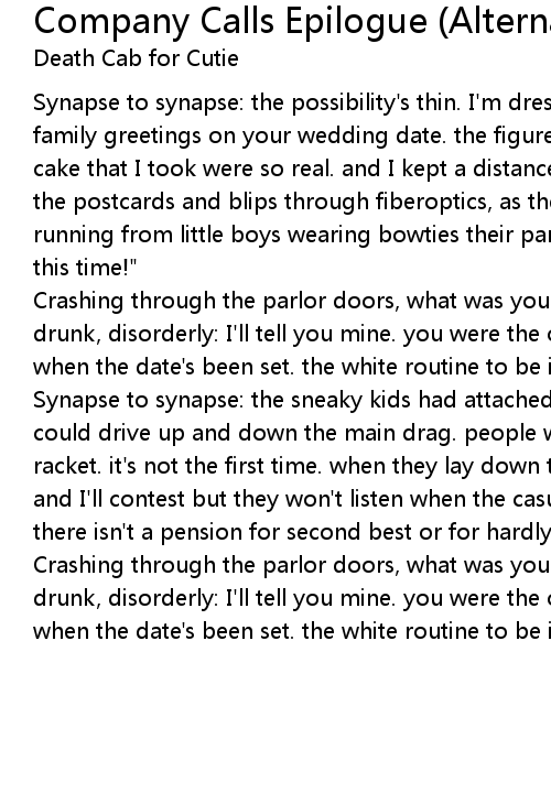 Crashing through the parlor doors, what was your first reaction? screaming, drunk, disorderly: I'll tell you mine. you were the one but I can't spit it out when the date's been set. the white routine to be ingested inaccurately.