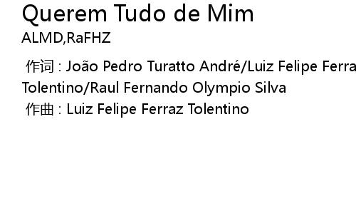 | [00:00.000] | 作词 : João Pedro Turatto André/Luiz Felipe Ferraz Tolentino/Raul Fernando Olympio Silva |