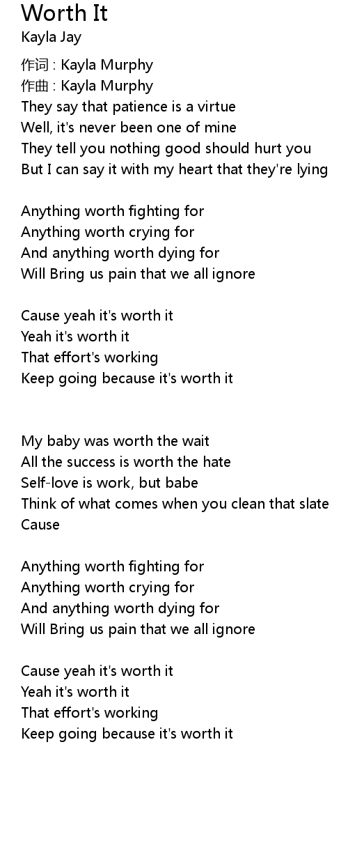 | Cause yeah it' s worth it | |