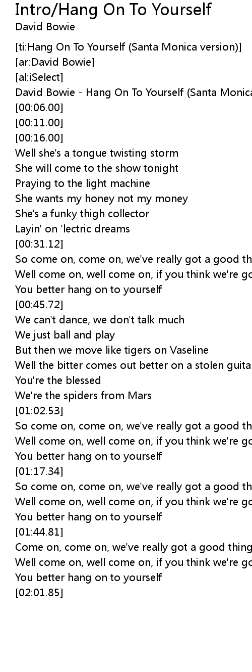 [ti:Hang On To Yourself (Santa Monica version)] |