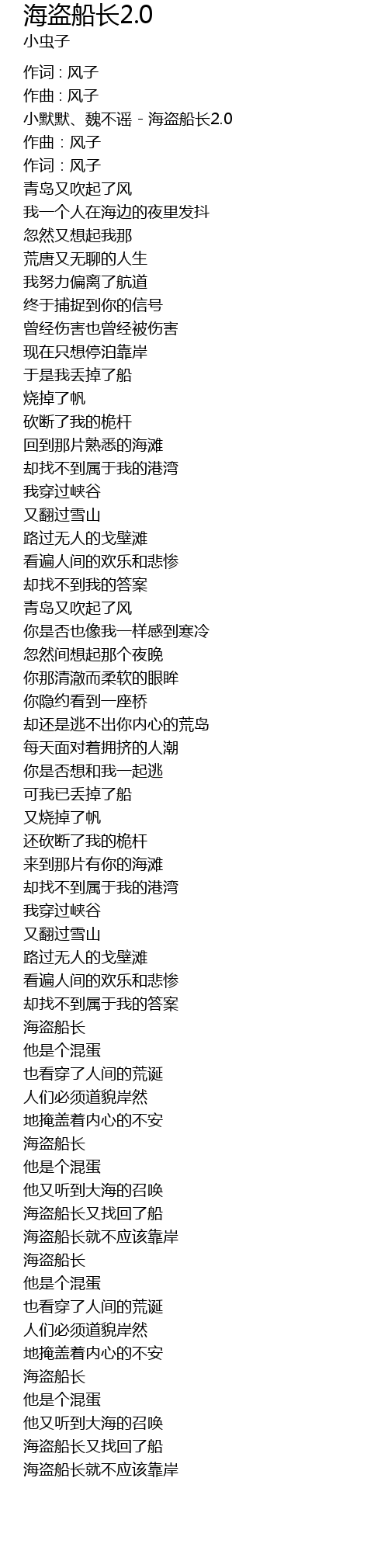 | 小默默、魏不谣 - 海盗船长2.0 | |