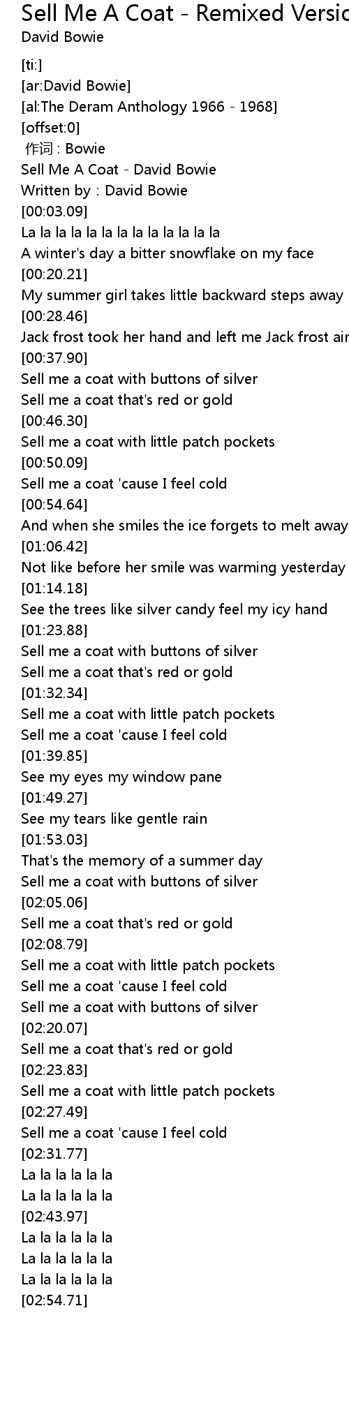 | [00:01.22] | Sell Me A Coat - David Bowie |