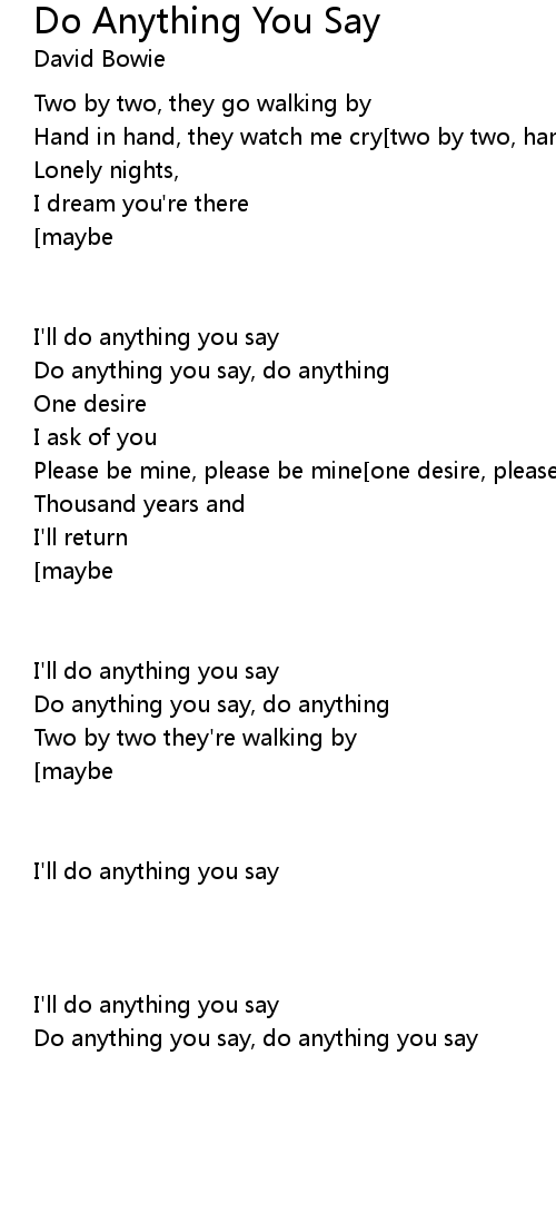 Do anything you say, do anything you say