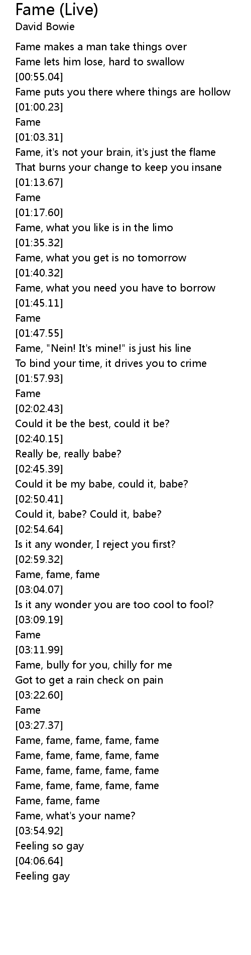 Fame, fame, fame, fame, fame |