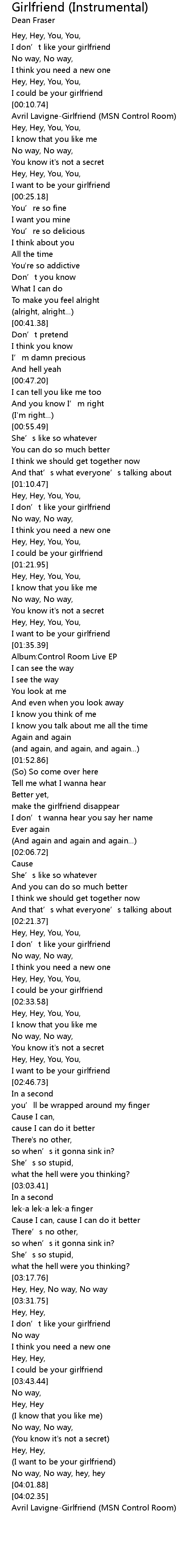 | [00:11.36] | Avril LavigneGirlfriend MSN Control Room |