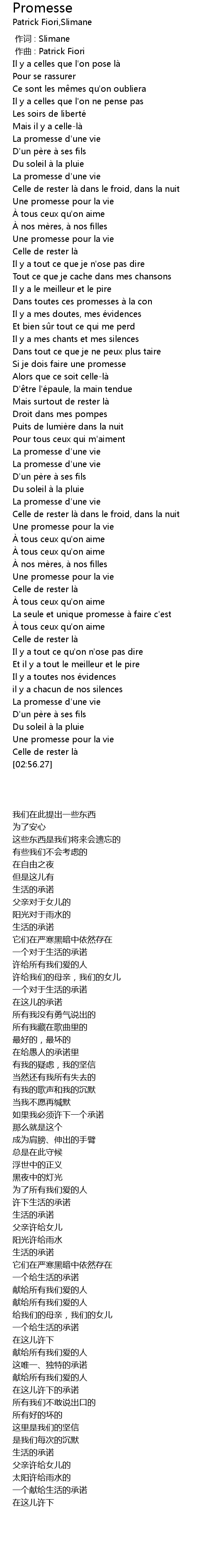 | [01:56.76] | Une promesse pour la vie |