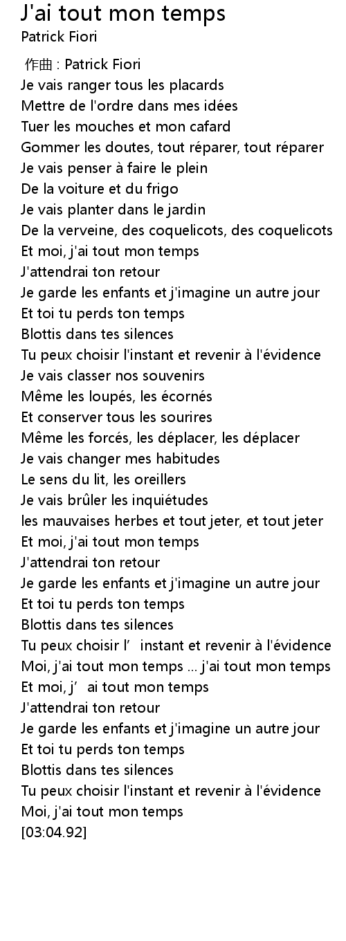 | [03:01.93] | Moi, j'ai tout mon temps |