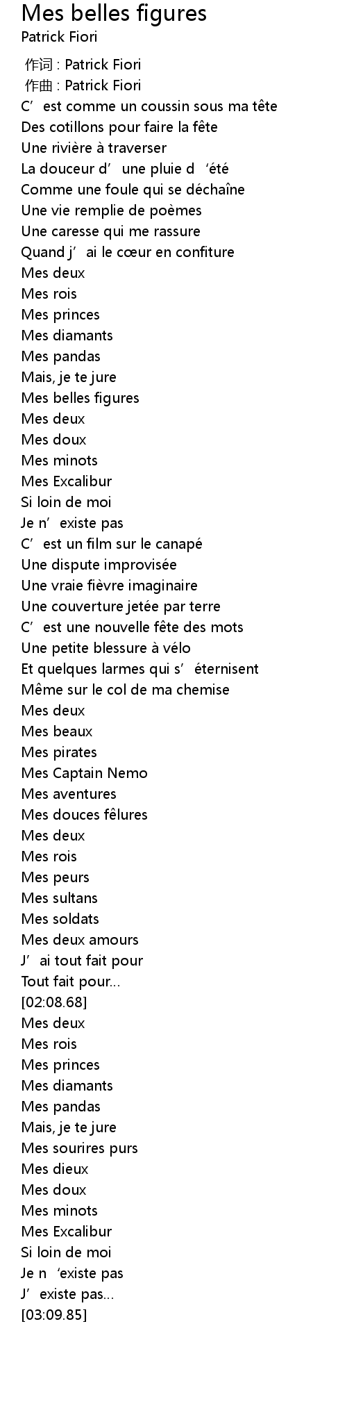 | [00:01.000] | 作曲 : Patrick Fiori |