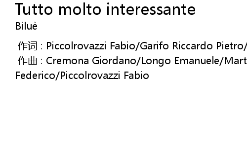 | [00:00.000] | 作曲 : Cremona Giordano/Longo Emanuele/Martello Alessandro/Mercuri Federico/Piccolrovazzi Fabio |