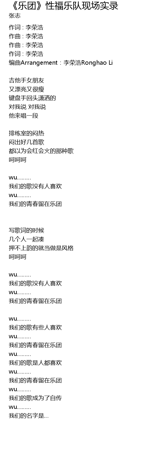 | Song | 《乐团》性福乐队现场实录 |