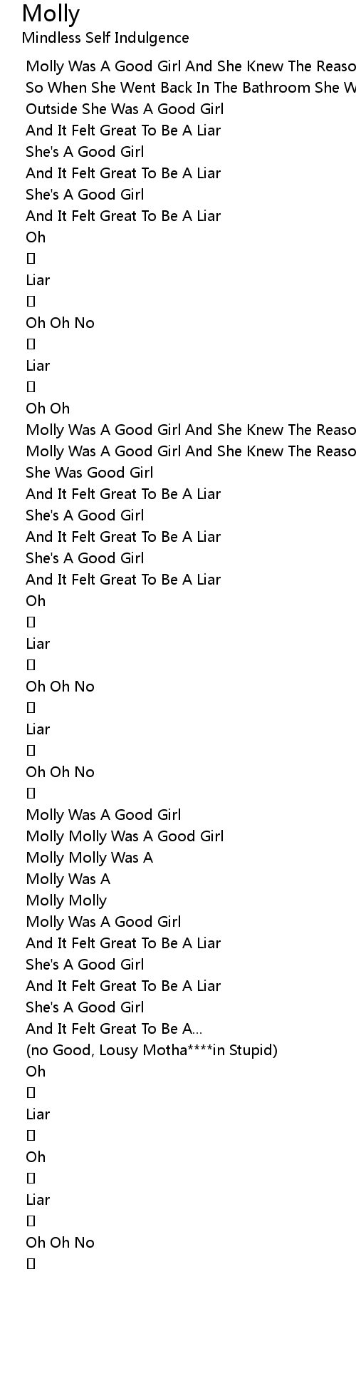 | [01:08.86] | Molly Molly Was A Good Girl |