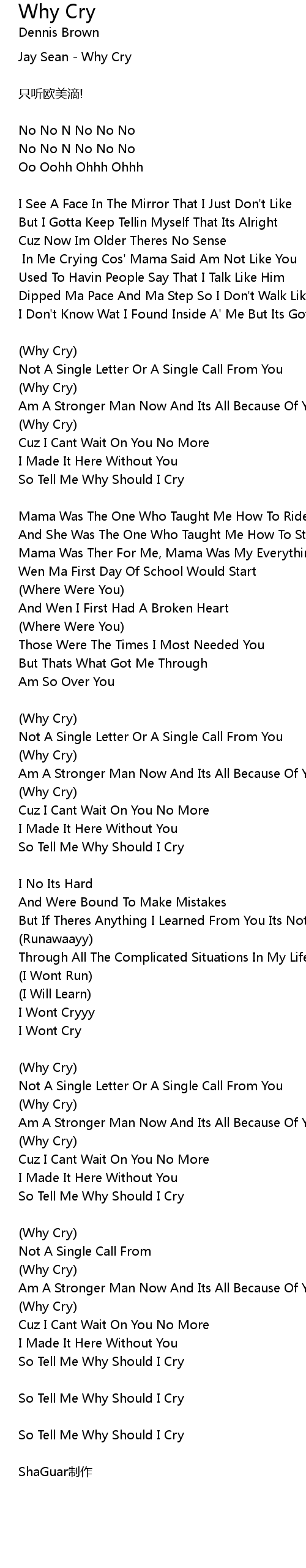 | Jay Sean - Why Cry | |