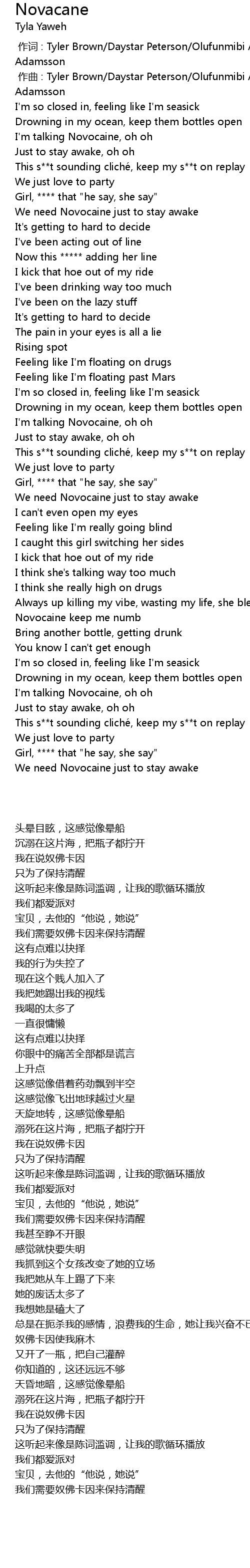 | [01:32.472] | I'm talking Novocaine, oh oh |