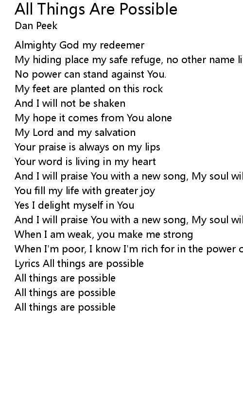 Lyrics All things are possible |