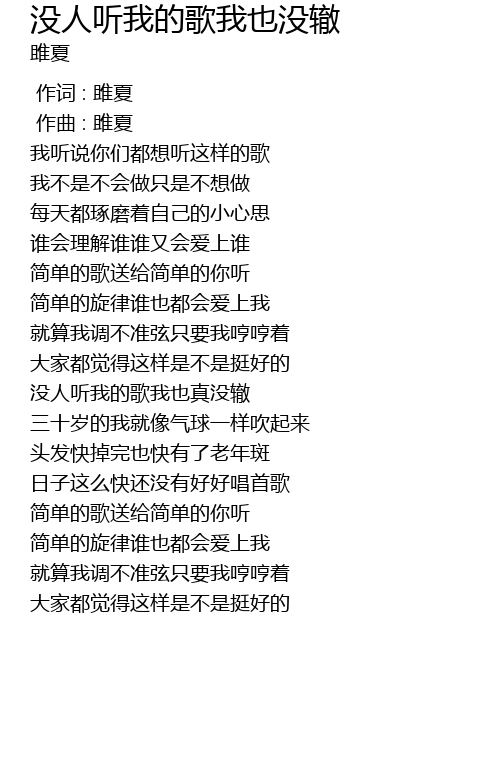 | [00:33.194] | 简单的歌送给简单的你听 |