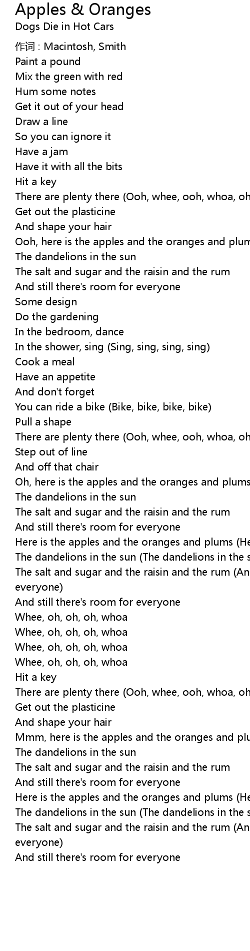 | Song | Apples & Oranges |