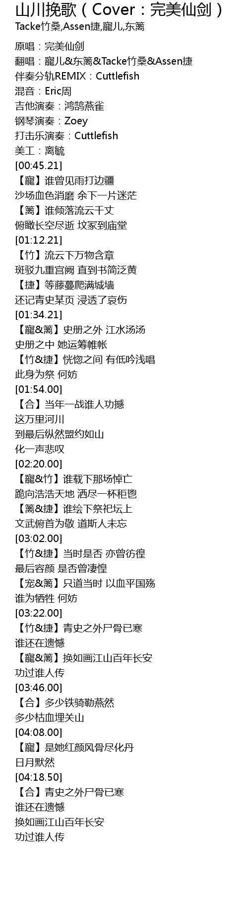 | [00:10.21] | 翻唱:寵儿&东篱&Tacke竹桑&Assen捷 |