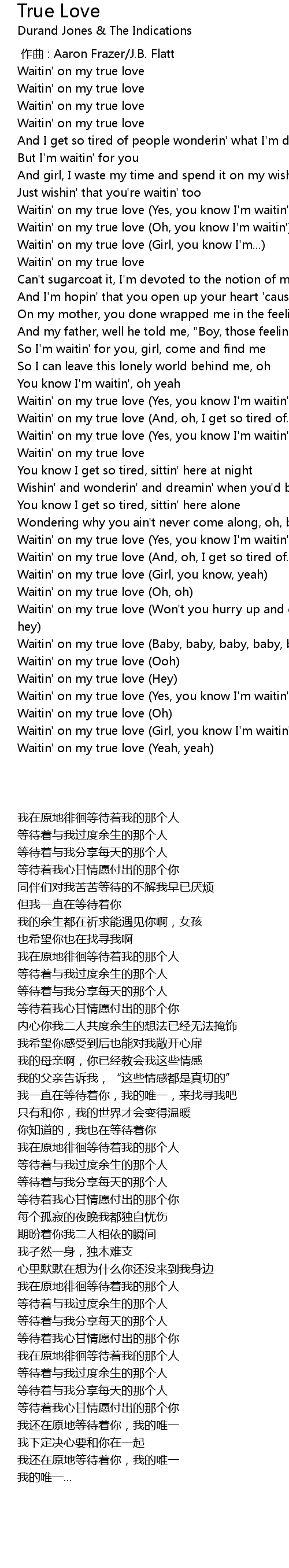 | [01:56.180] | Waitin' on my true love (Yes, you know I'm waitin', oh yeah) |