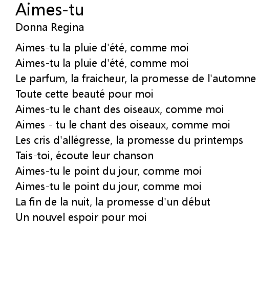 | Aimes - tu le chant des oiseaux, comme moi | |