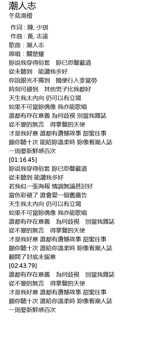 | [03:00.98] | 誰都有存在意義 為何歧視 別當我雜誌 |