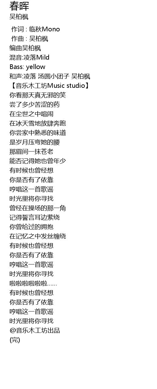 | [02:56.315] | @音乐木工坊出品 |