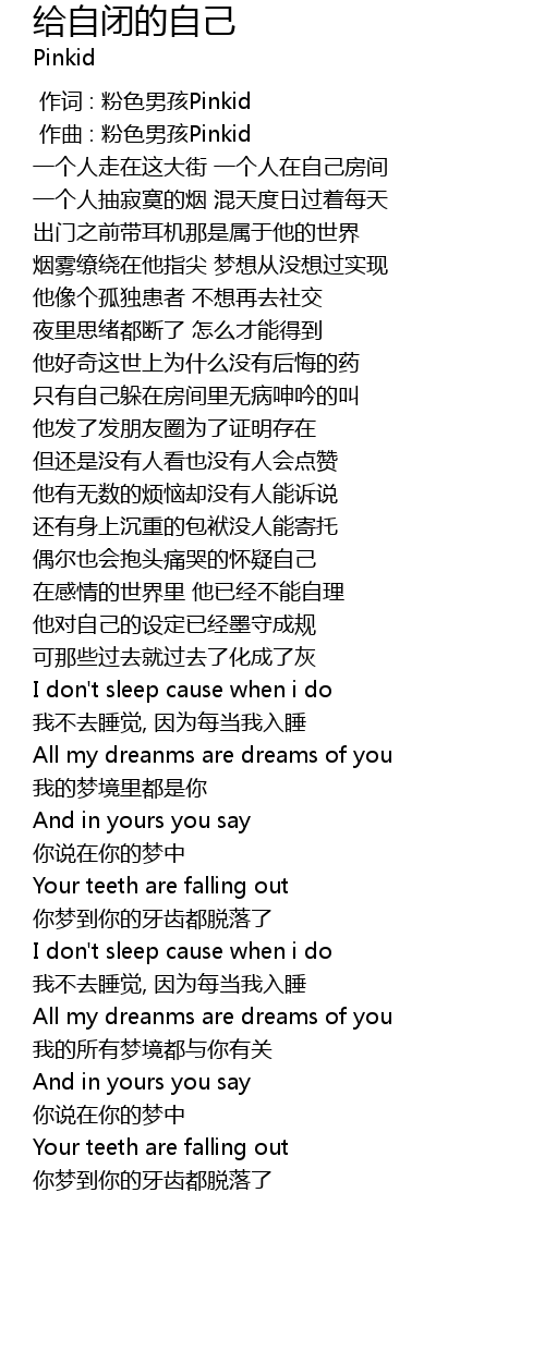 | [00:00.000] | 作词 : 粉色男孩Pinkid |