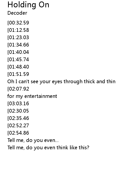 | [00:36.52][01:48.40] | Hoping this is happening |