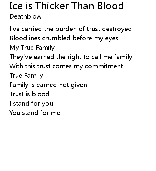 | Song | Ice is Thicker Than Blood |