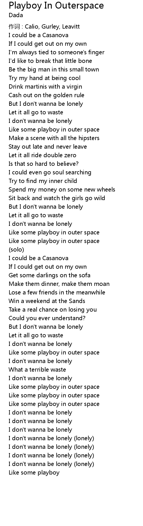 | Like some playboy in outer space | |