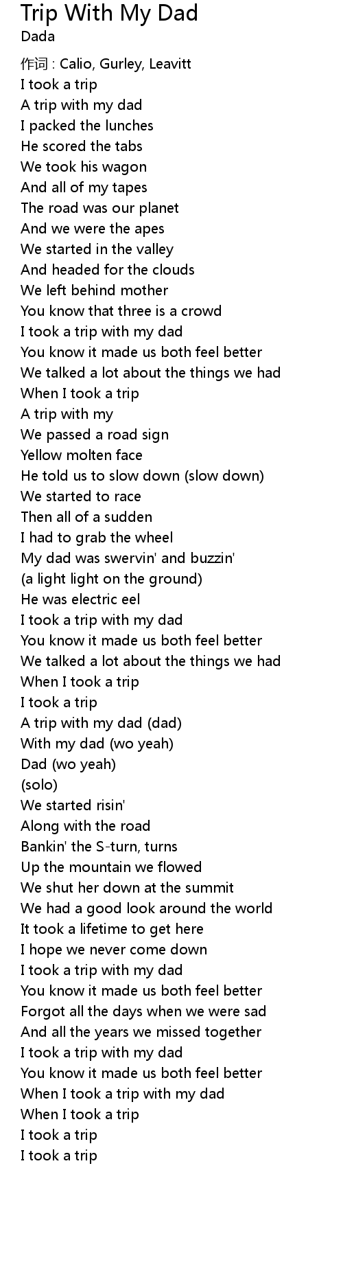 | Song | Trip With My Dad |