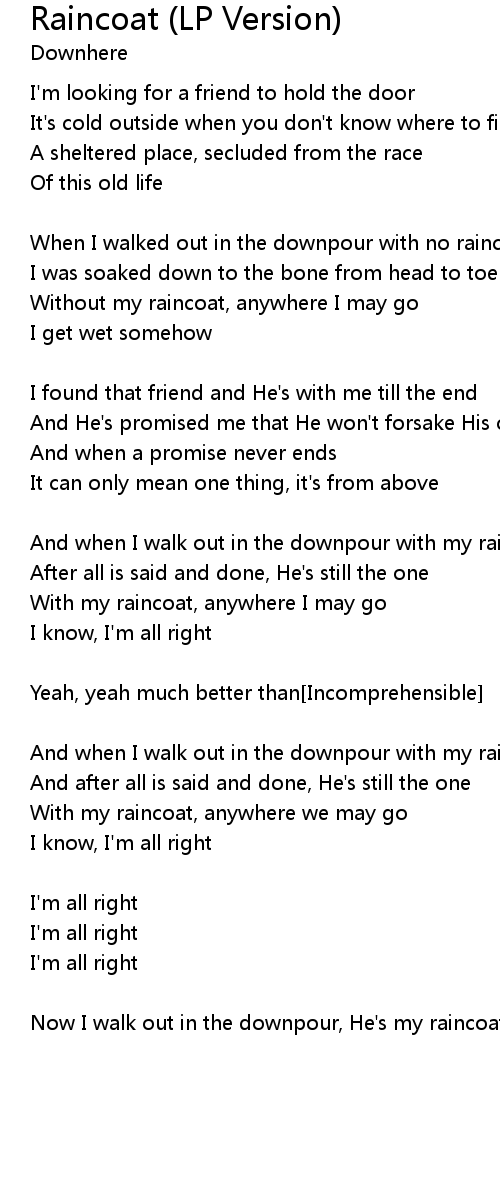 | And when I walk out in the downpour with my raincoat | |