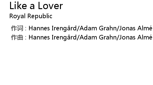 | [00:00.000] | 作词 : Hannes Irengård/Adam Grahn/Jonas Almén/Per Andreasson |