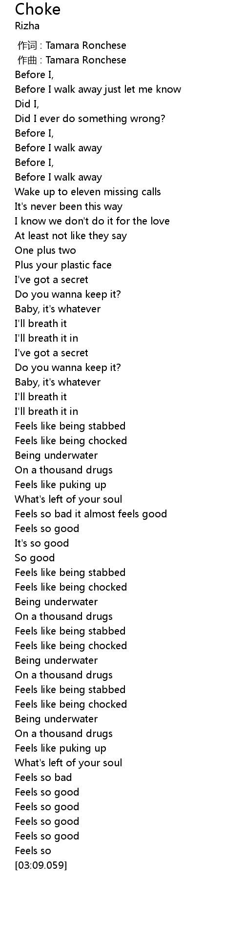 | [01:32.697] | Feels like being chocked |