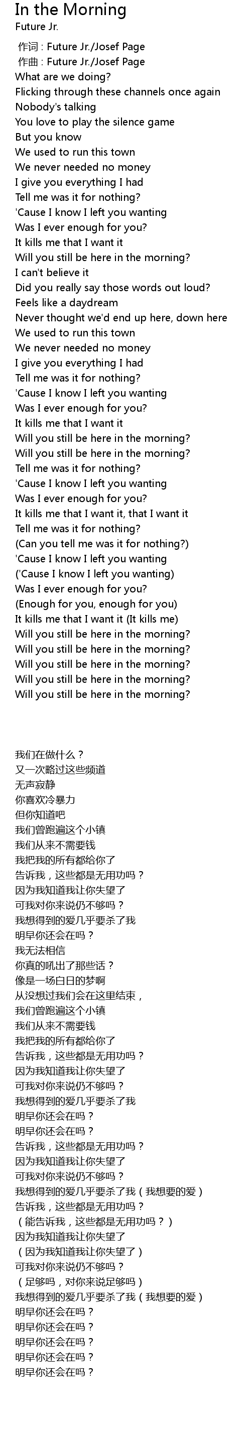 | [00:00.000] | 作词 : Future Jr./Josef Page |