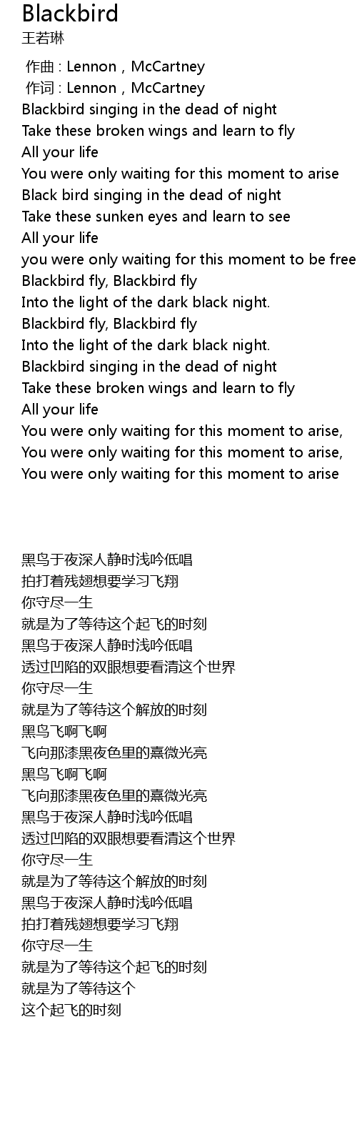 | [00:48.708] | Blackbird fly, Blackbird fly |