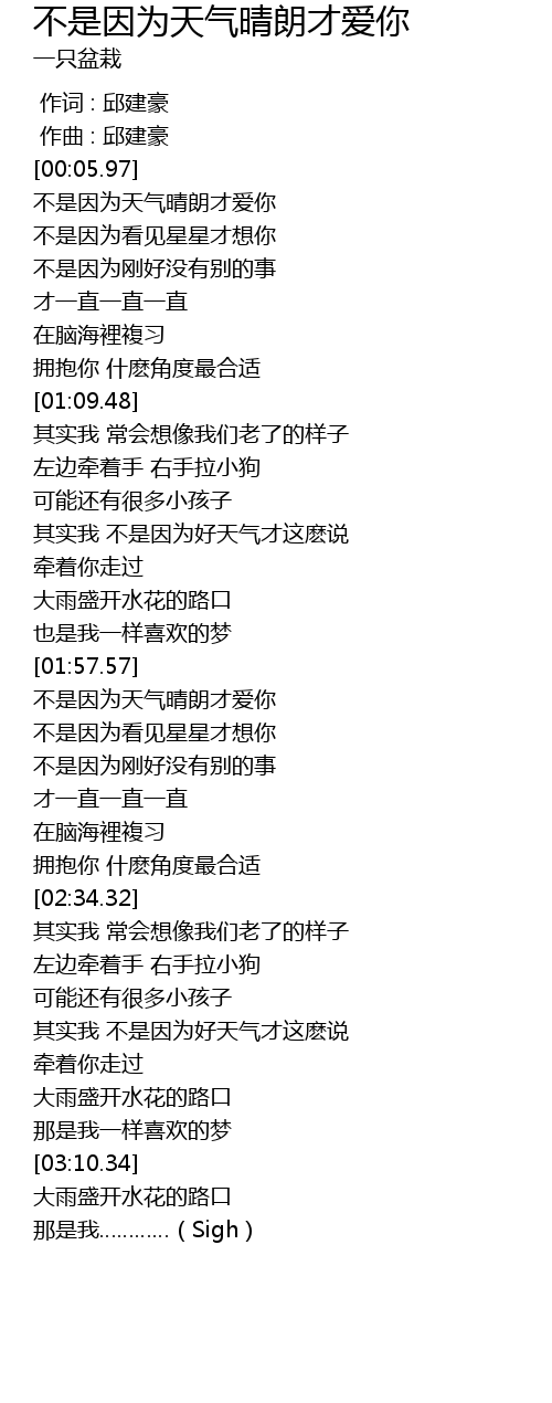 | [00:32.97] | 不是因为天气晴朗才爱你 |