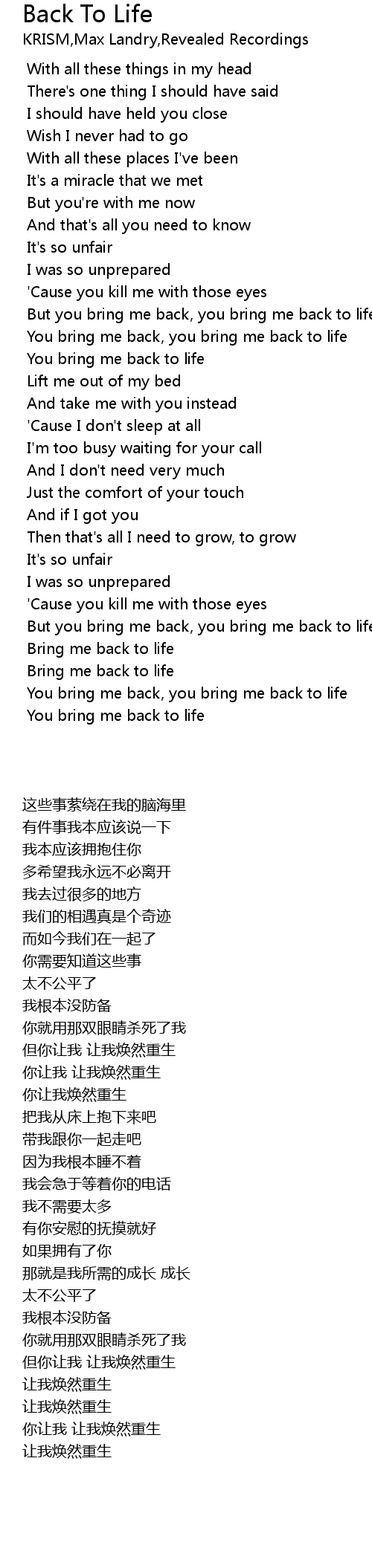 Bring me back to life |