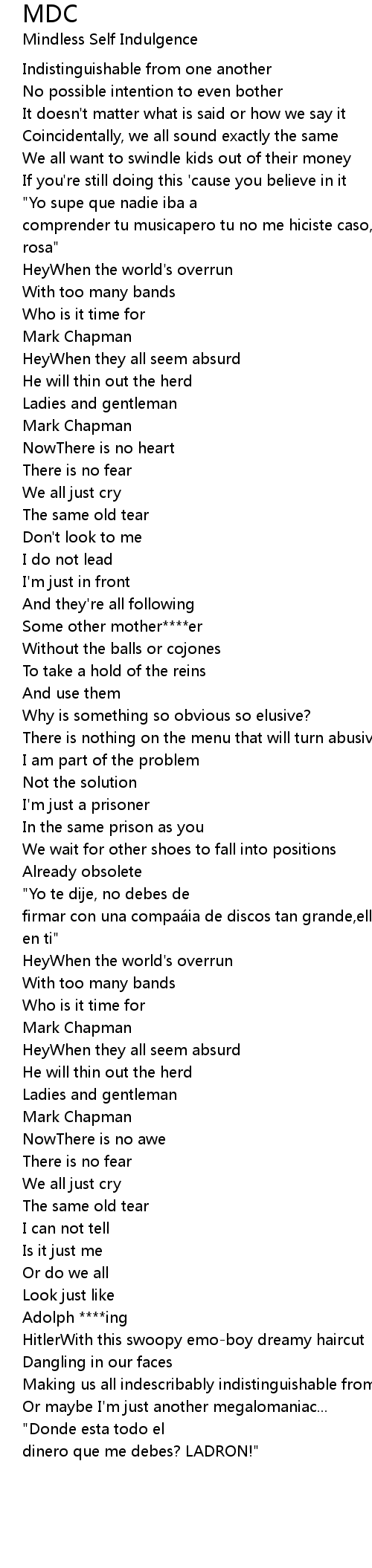 | No one will miss us at all[Jimmy's mom speaking Spanish]"Yo te dije, no debes de firmar con una compaáia de discos tan grande,ellos no te aprecian, yo no creo en ti" | |