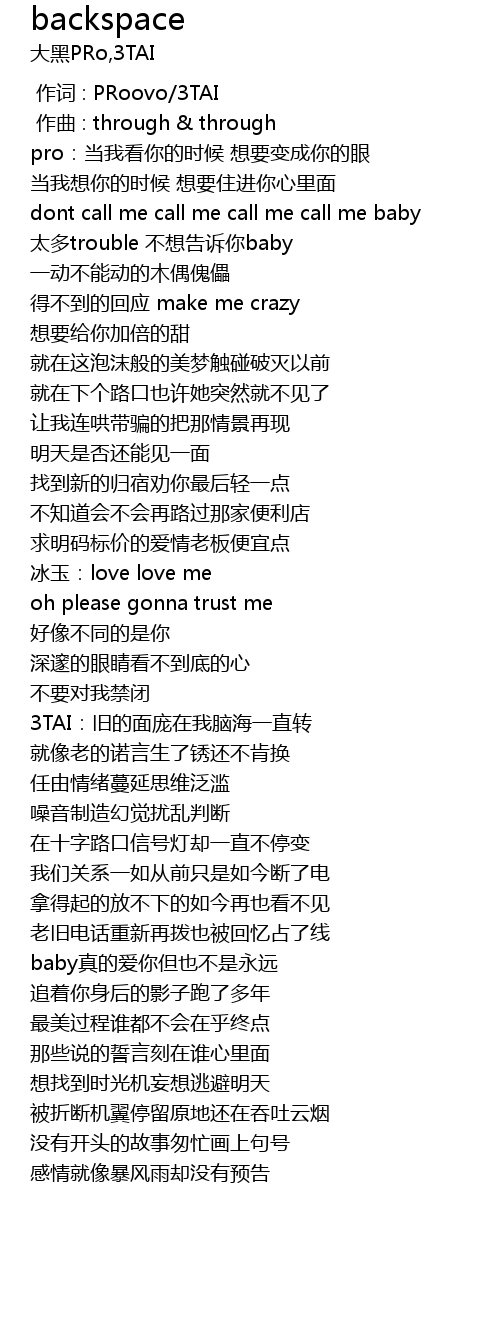 | [00:00.000] | 作词 : PRoovo/3TAI |