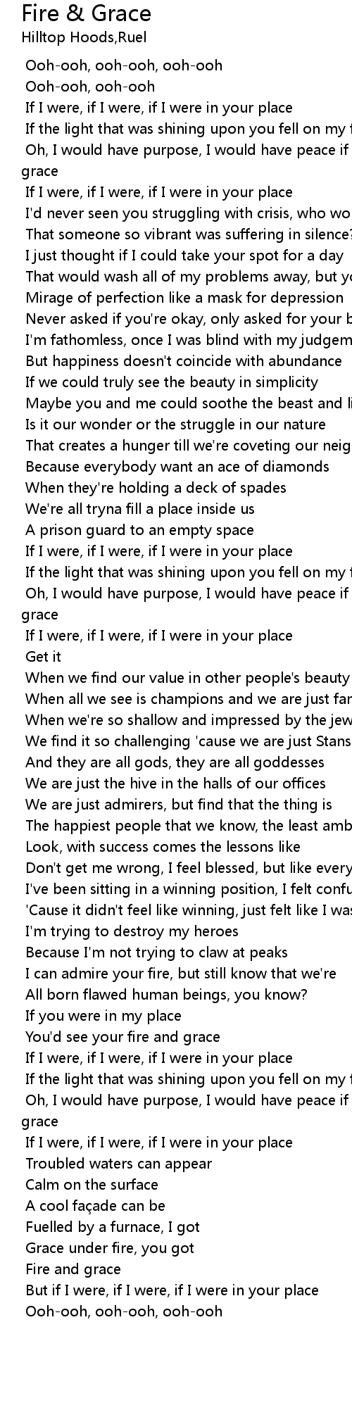 | [00:23.141] | Oh, I would have purpose, I would have peace if I had your fire and grace |