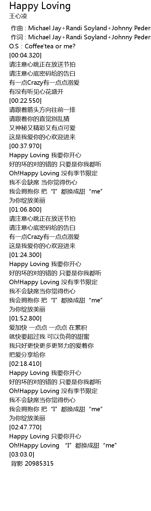 | [00:38.480] | Happy Loving wo yao ni kai xin |