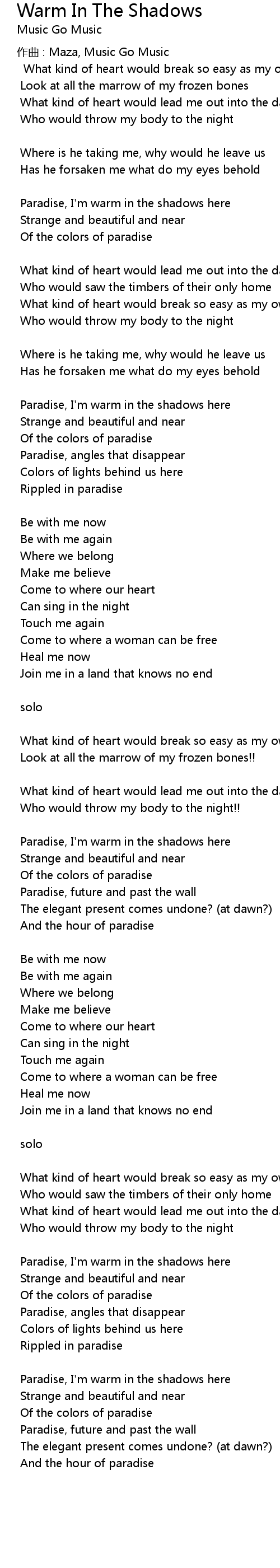 | Paradise, I' m warm in the shadows here | |