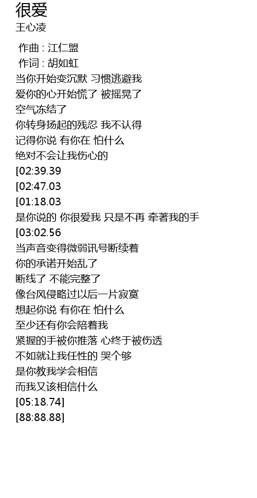 | [02:54.88][01:18.03] | 是你说的 你很爱我 只是不再 牵我的手 |