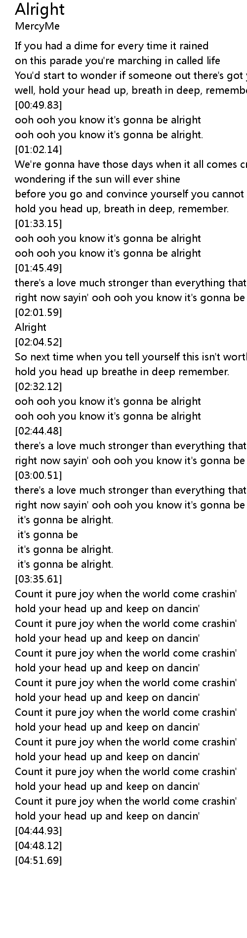 right now sayin' ooh ooh you know it's gonna be alright. |